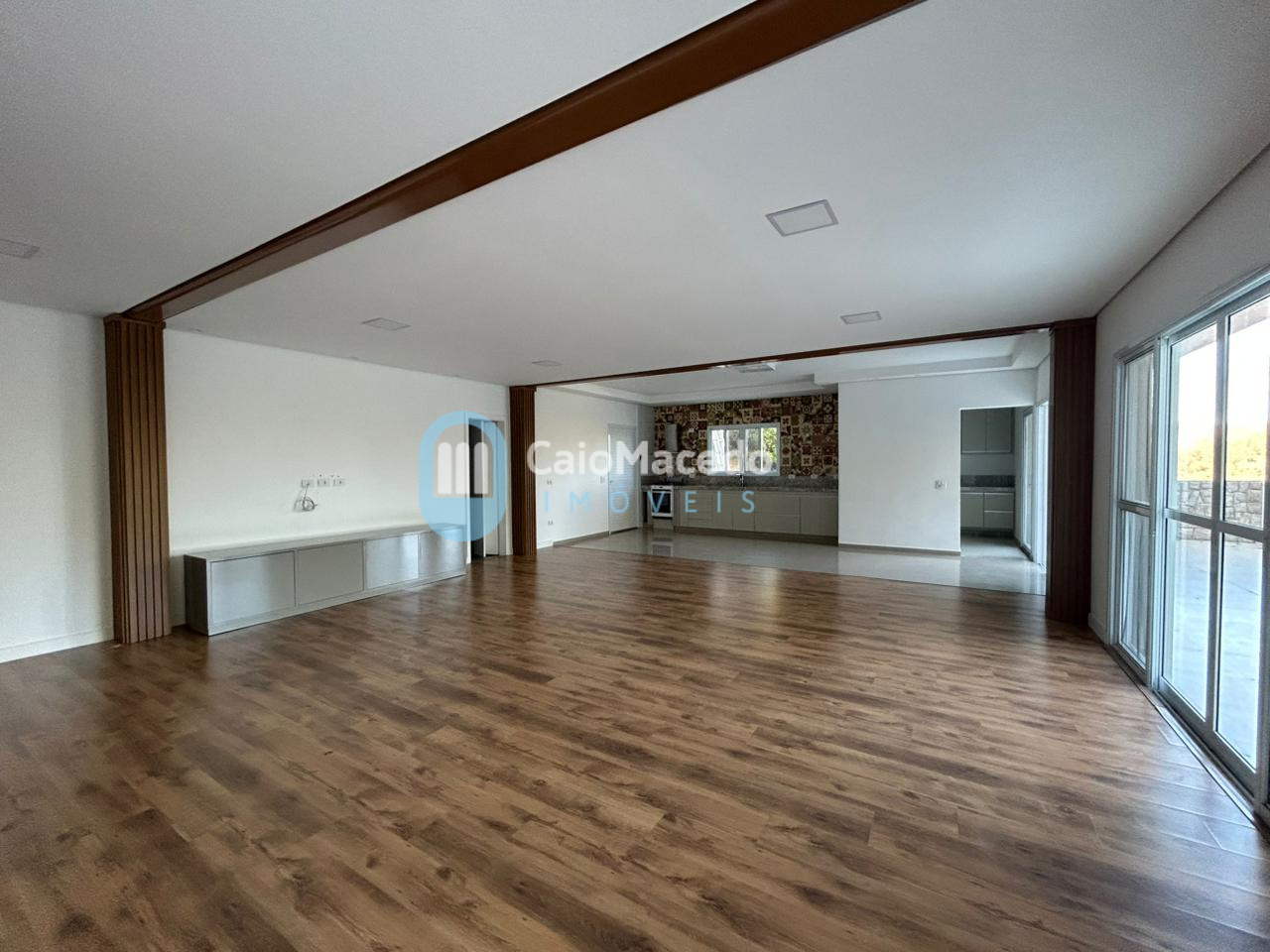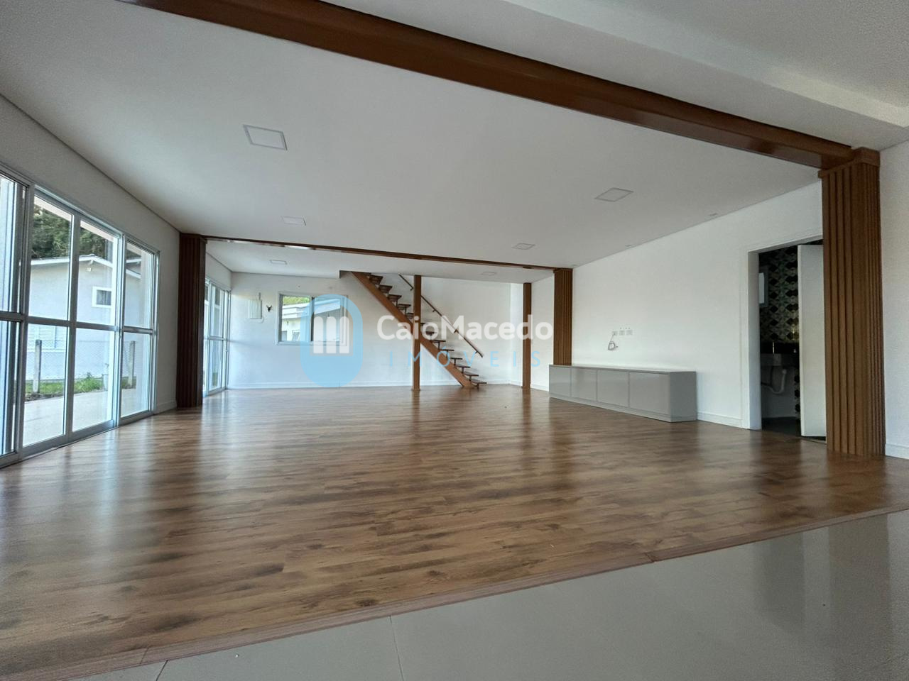 - Ampla sala em conceito aberto, piso laminado e ar condicionado;