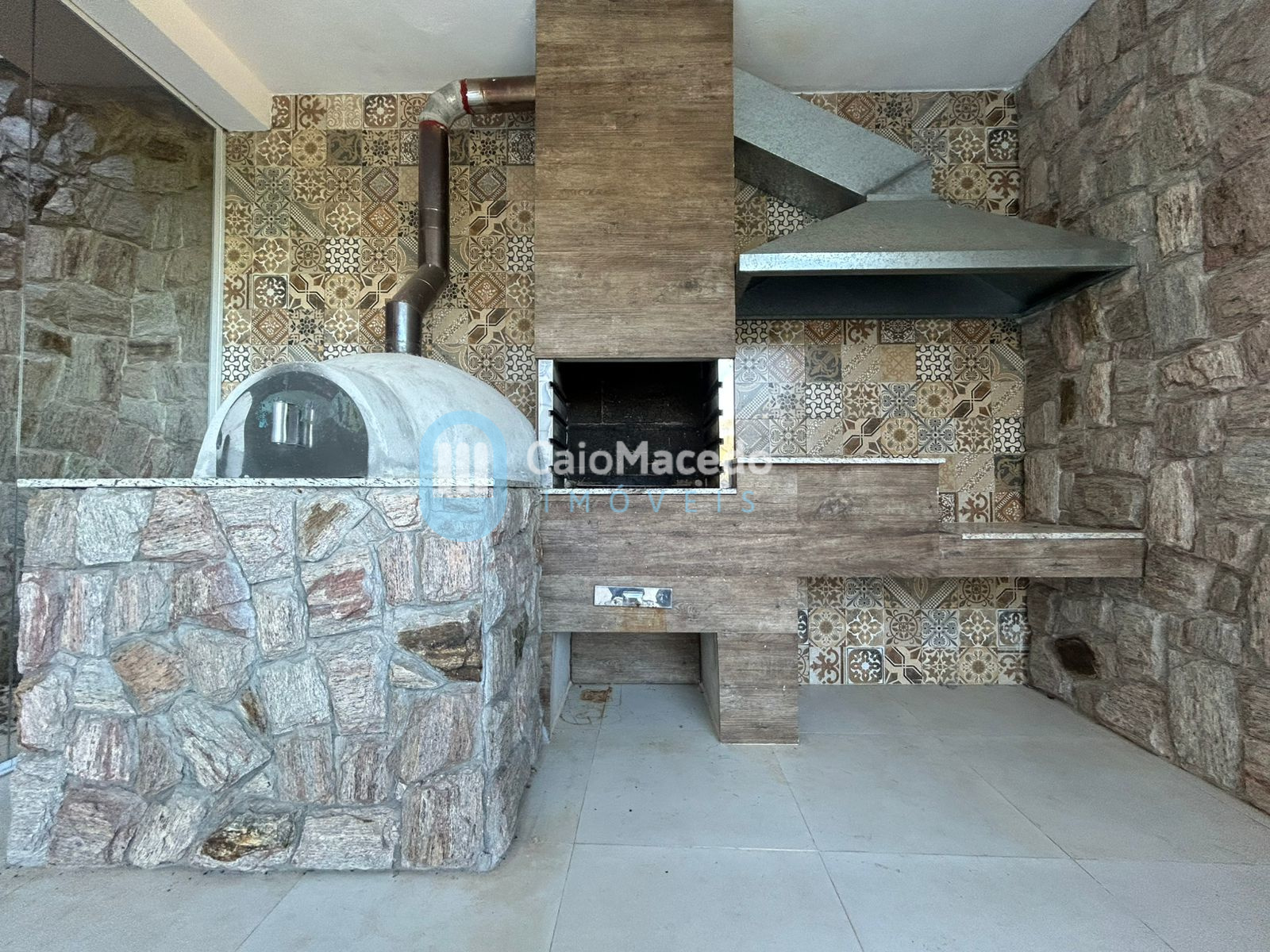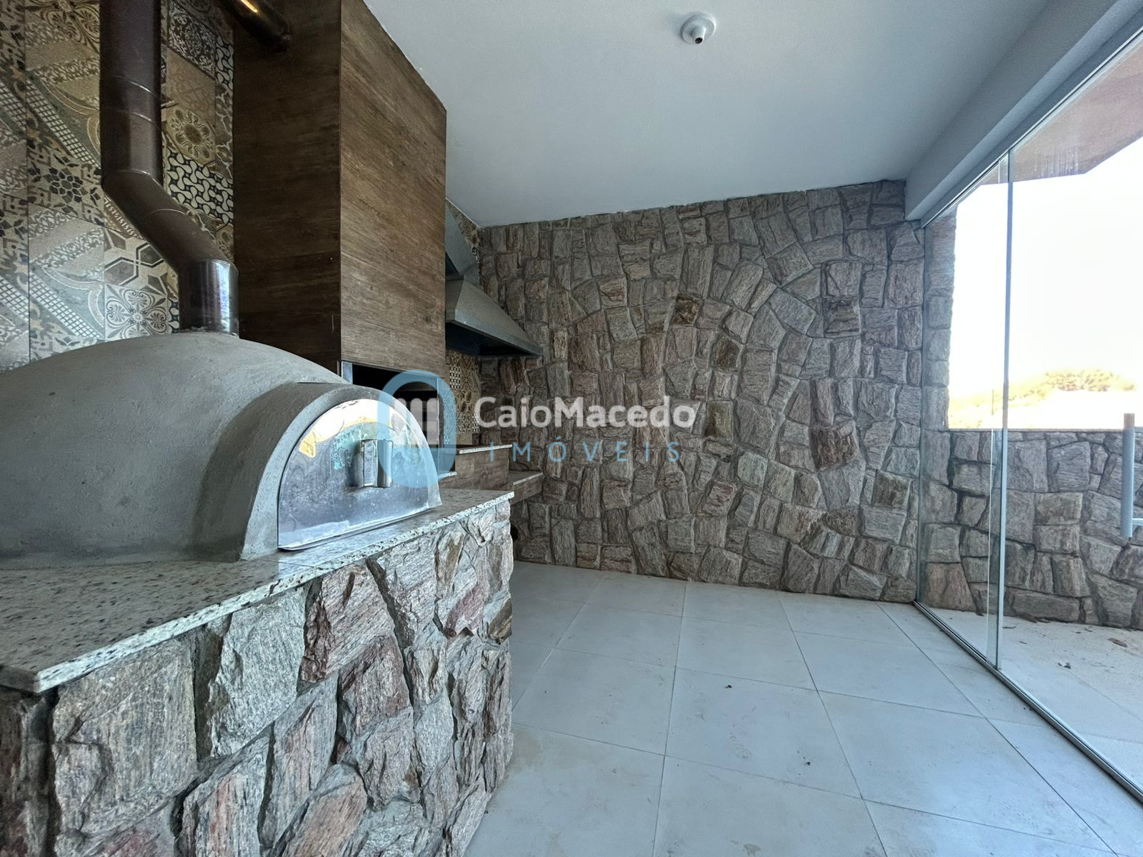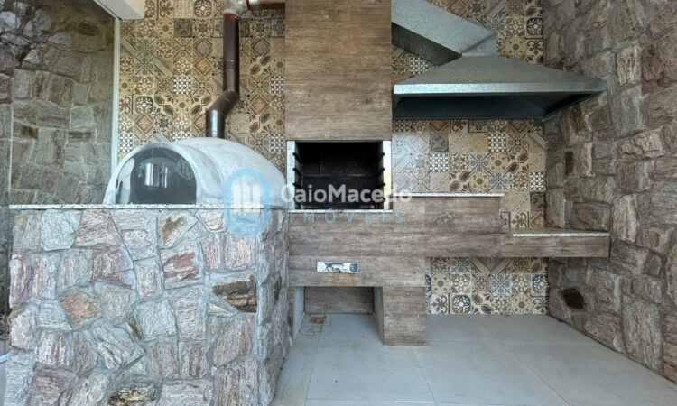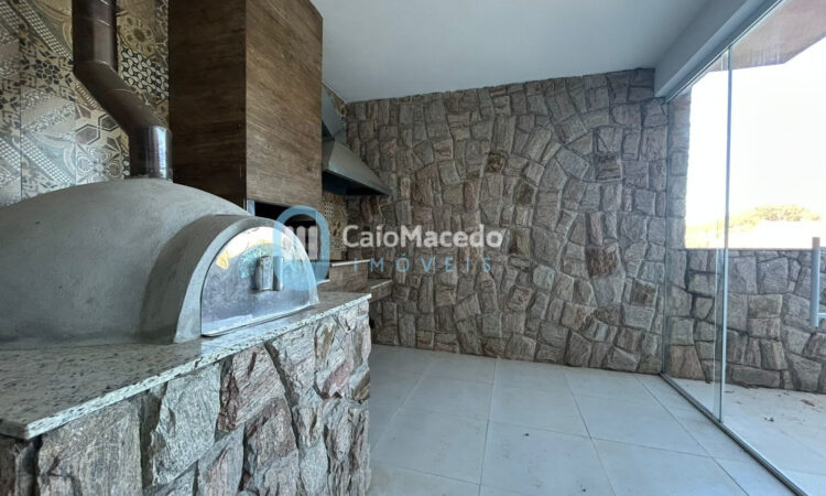- Área gourmet com churrasqueira, forno de pizza e fogão a lenha, fechada com Blindex;