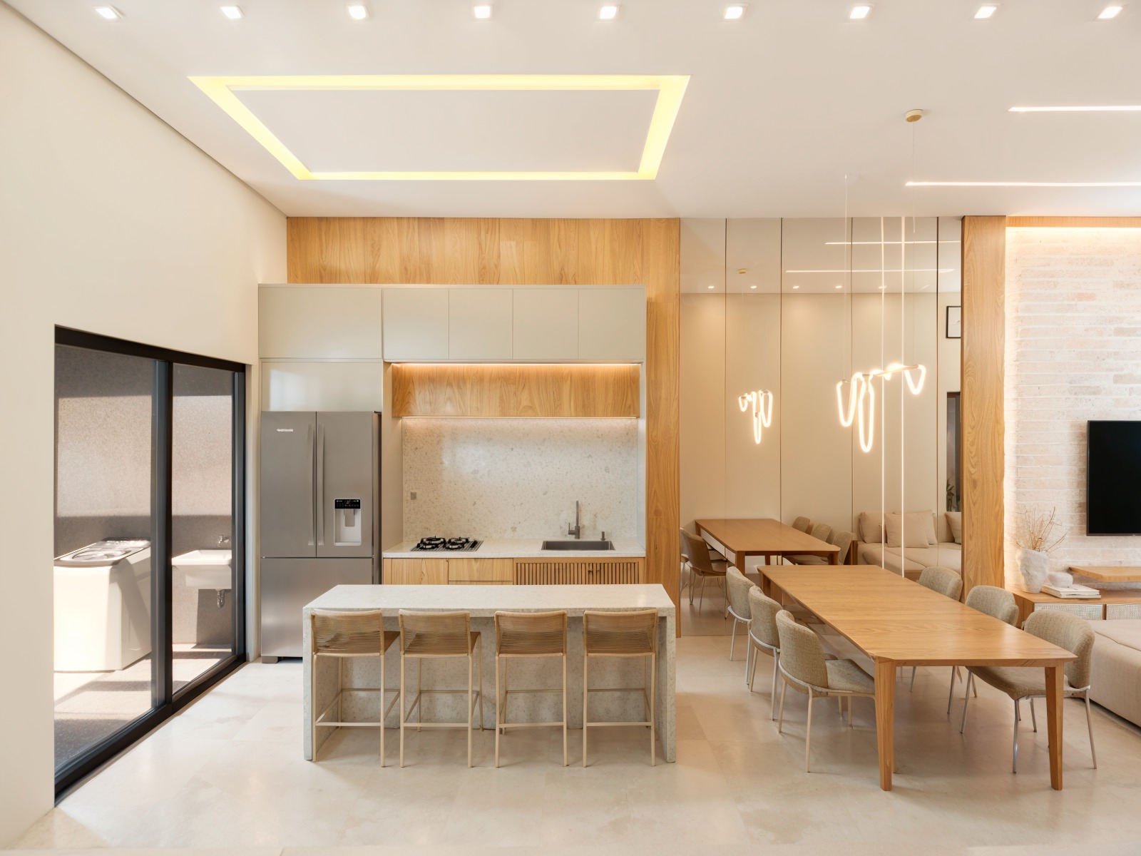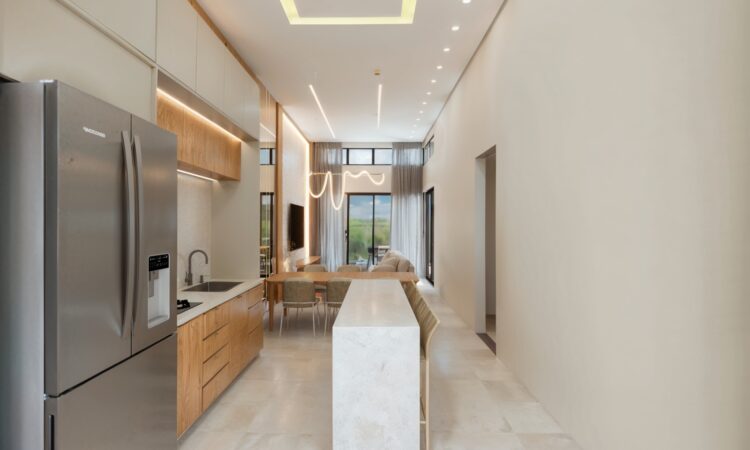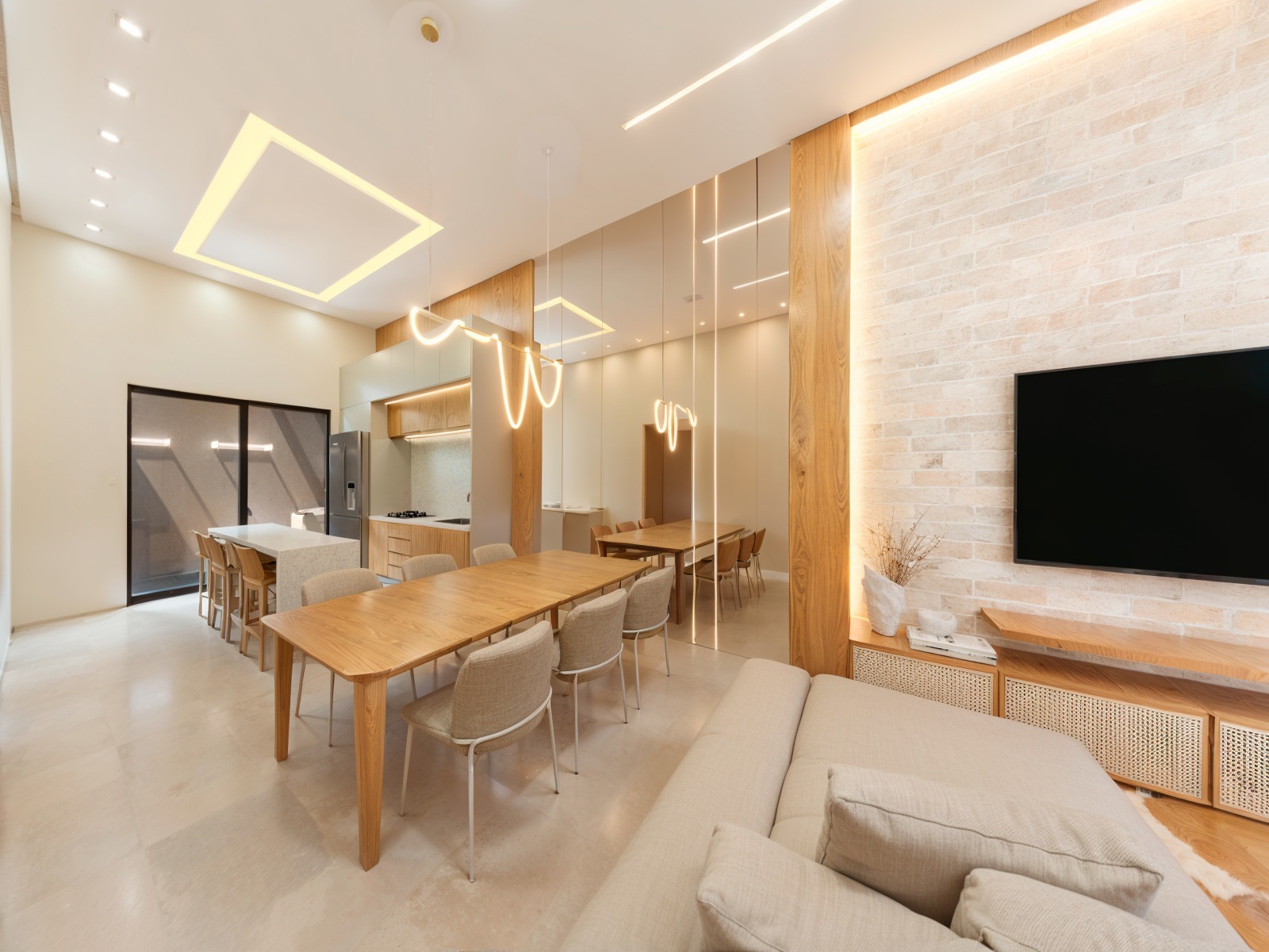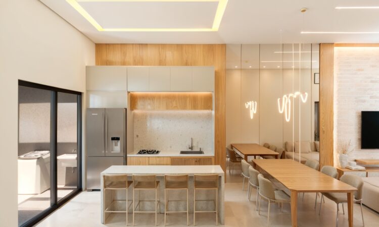 - Sala de estar e jantar integradas com a cozinha;