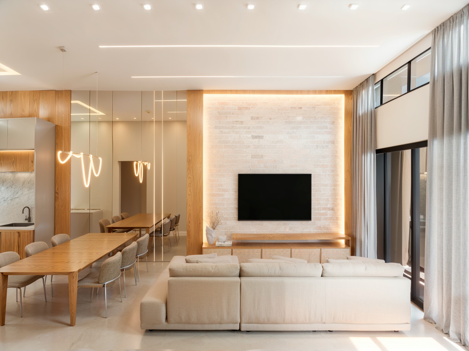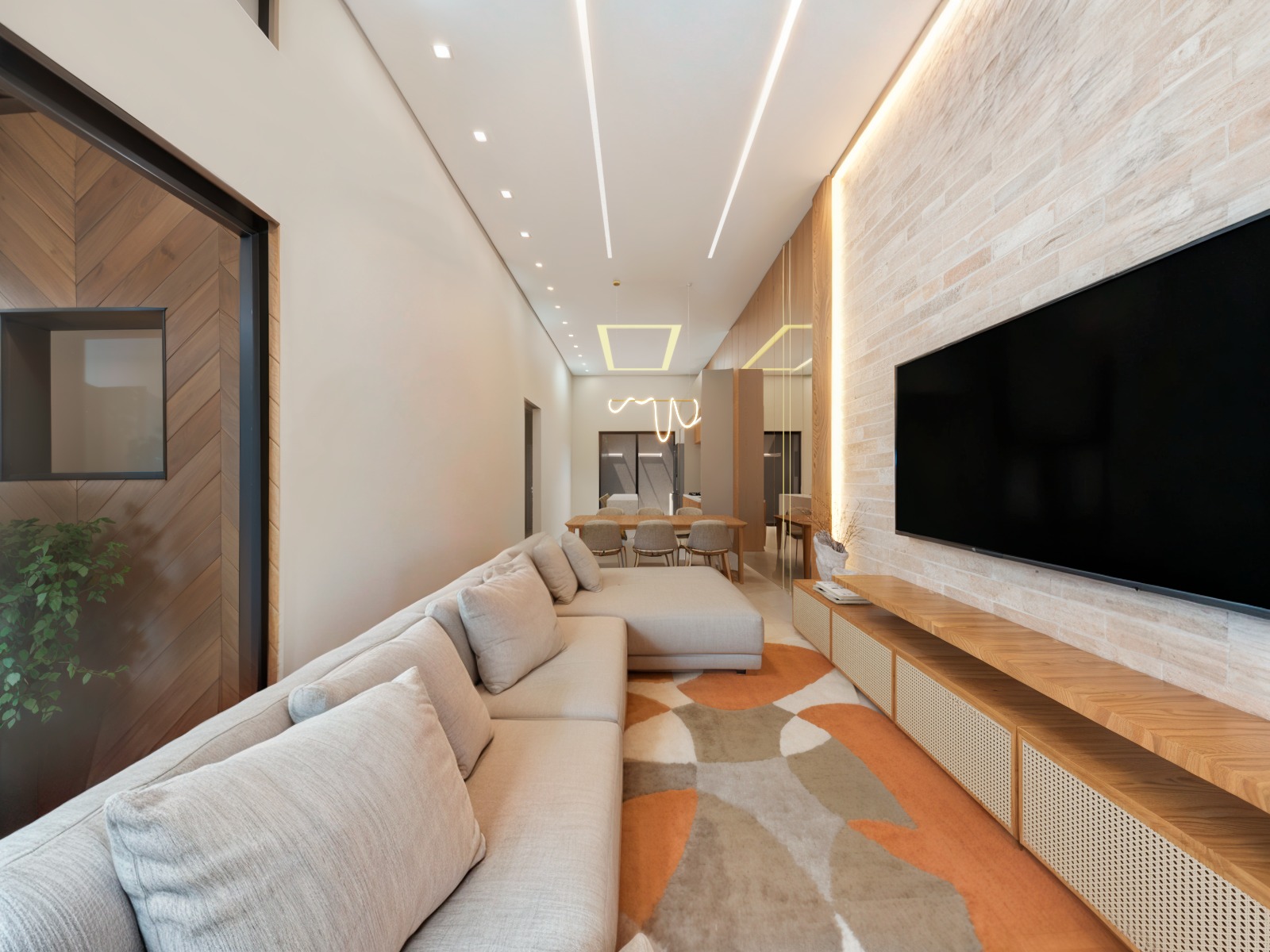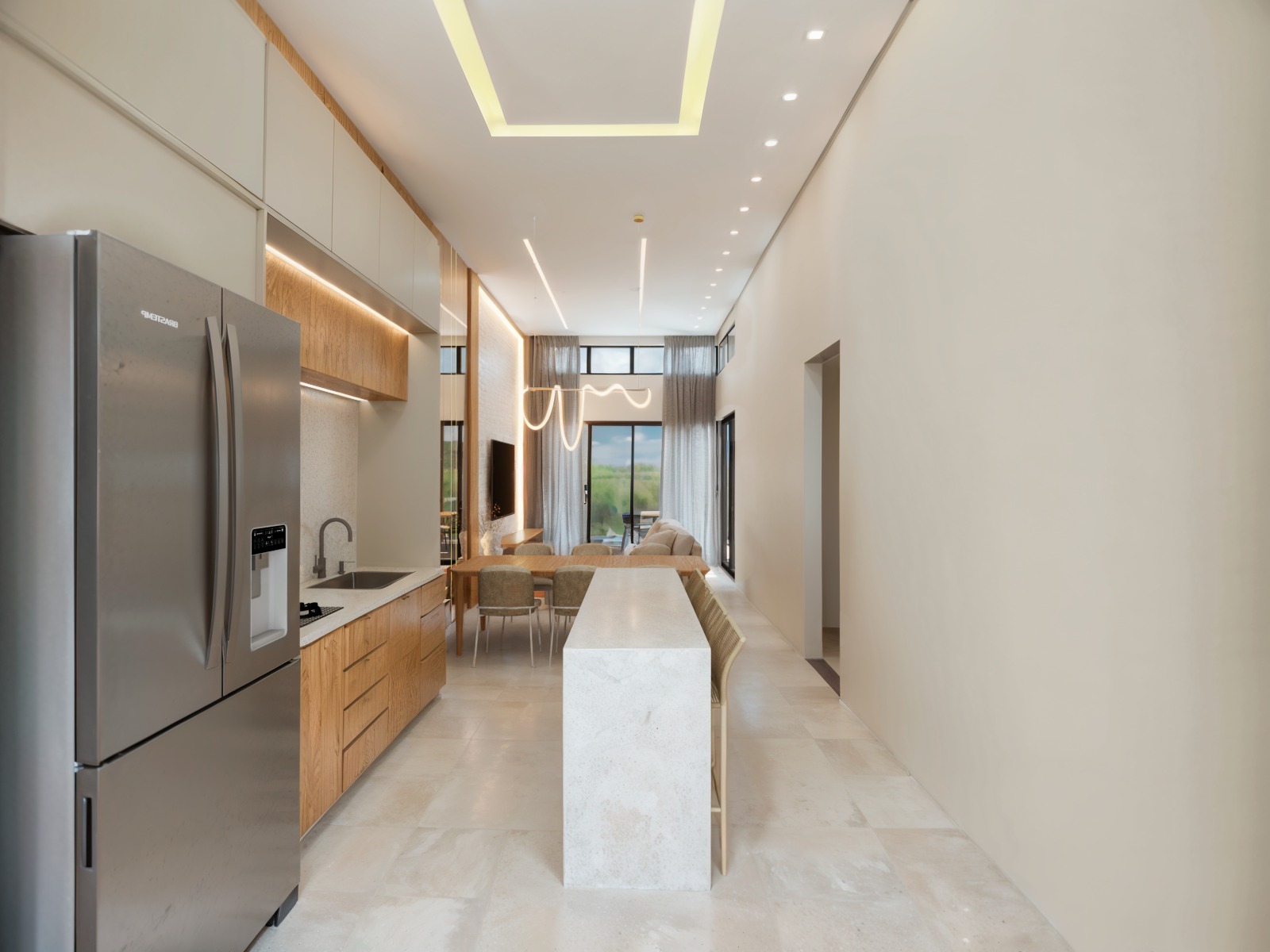 - Sala de estar e jantar integradas com a cozinha;