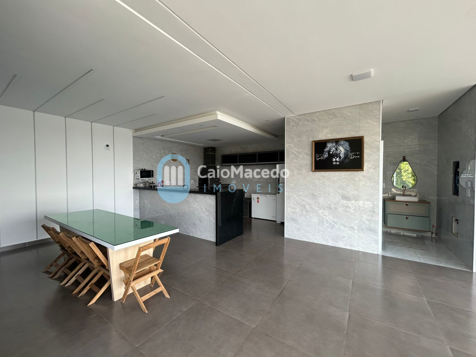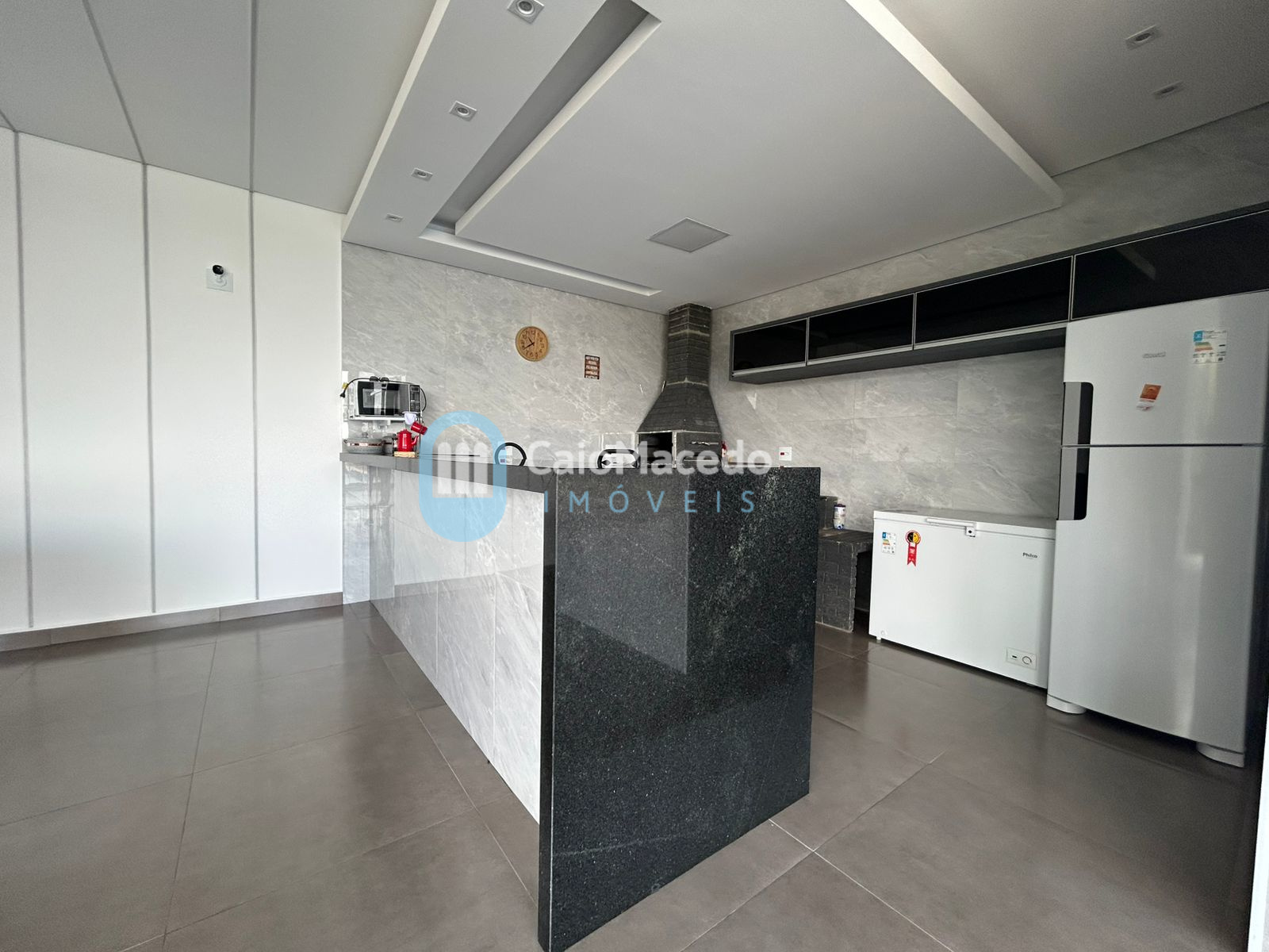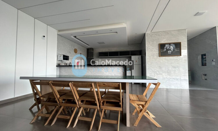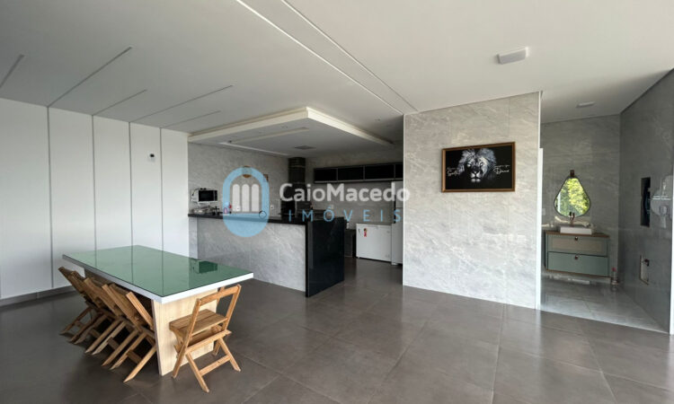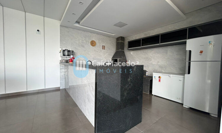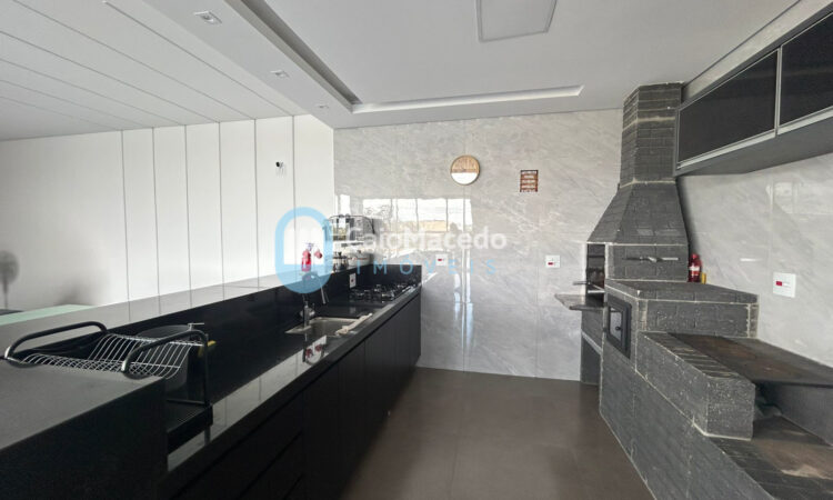 - Cozinha e área gourmet com churrasqueira, fogão a lenha e forno de pizza;