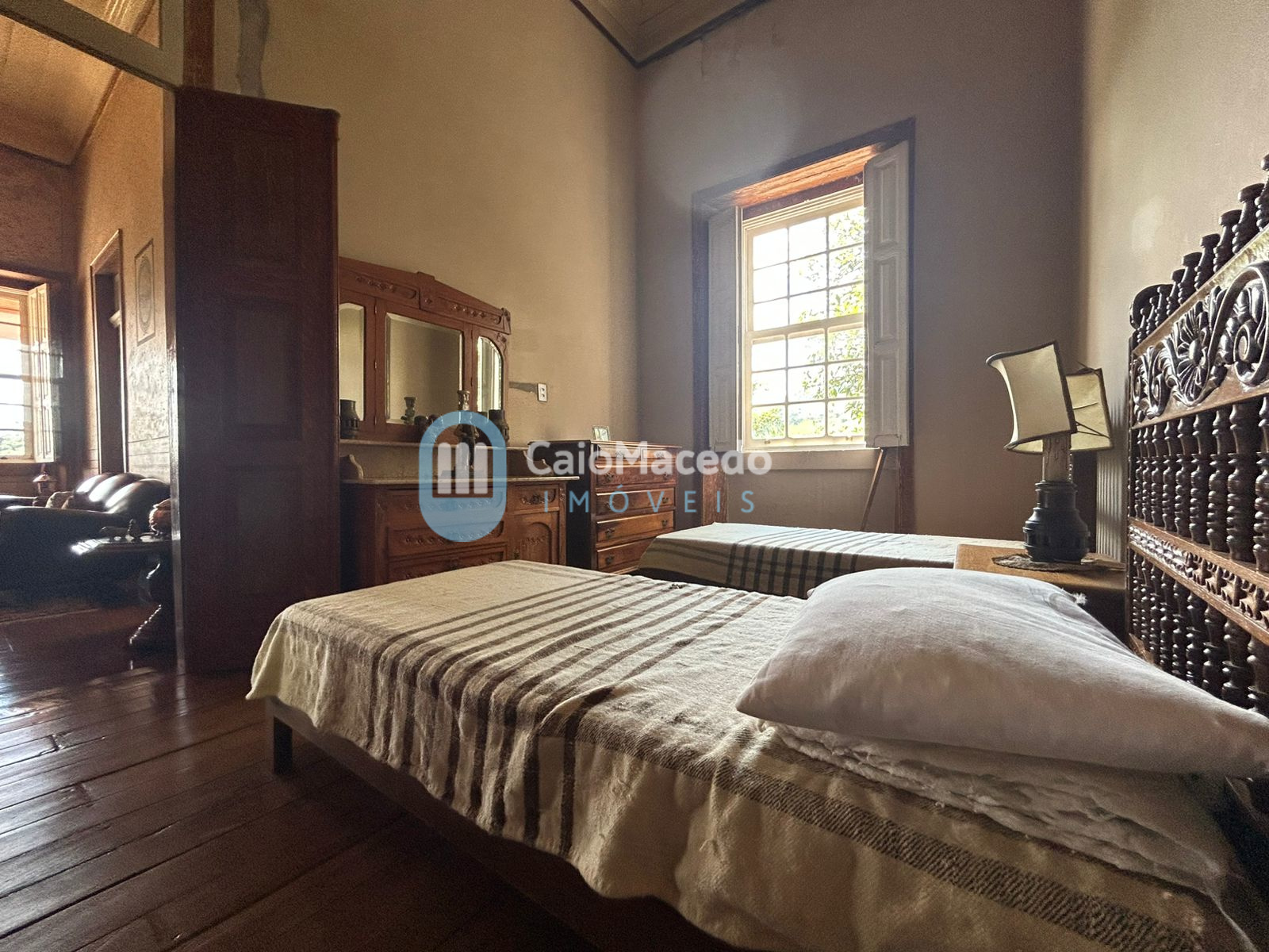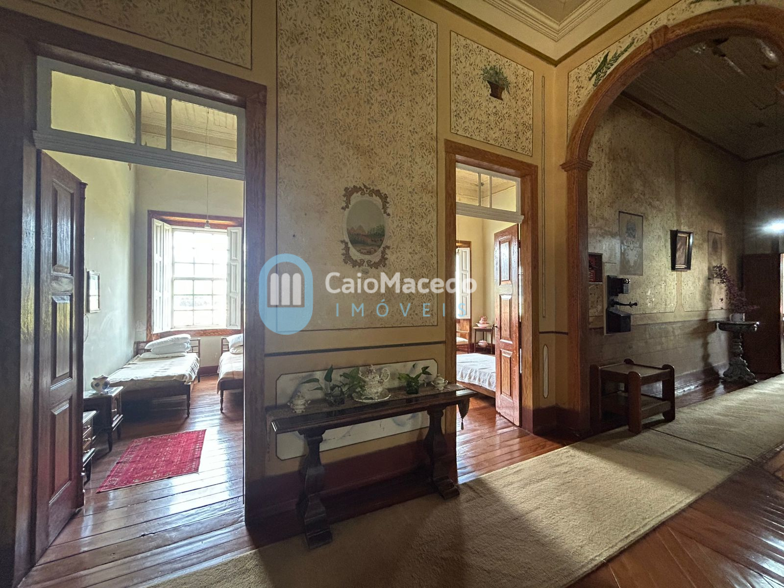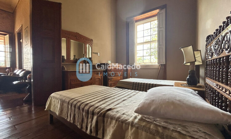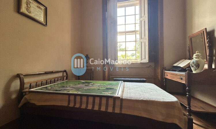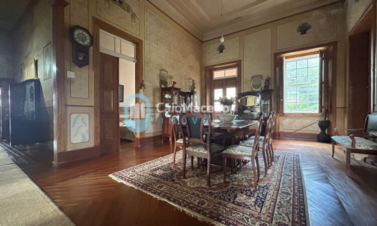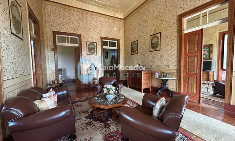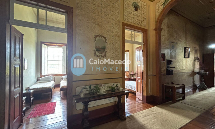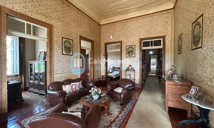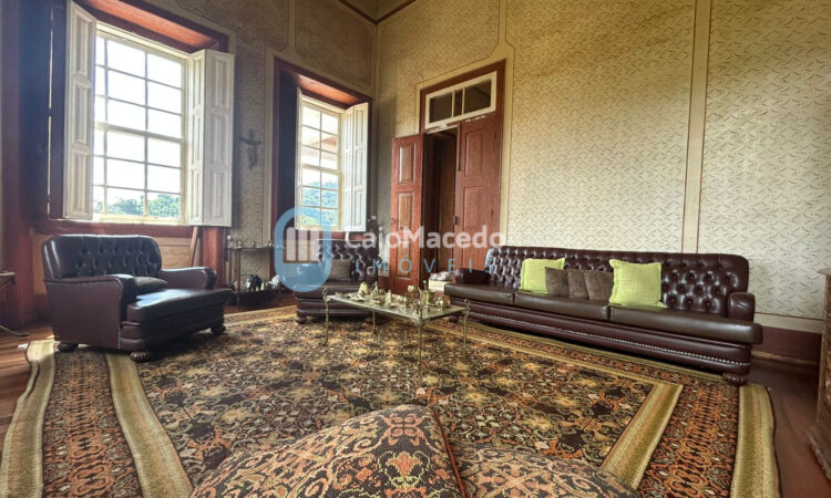 Sede social: casa de fazenda em estilo colonial/art déco autêntico, preservando a arquitetura clássica da região. A edificação possui amplas dimensões e planta que favorece tanto a residência familiar quanto o potencial para exploração comercial (eventos, turismo rural ou hospitalidade).