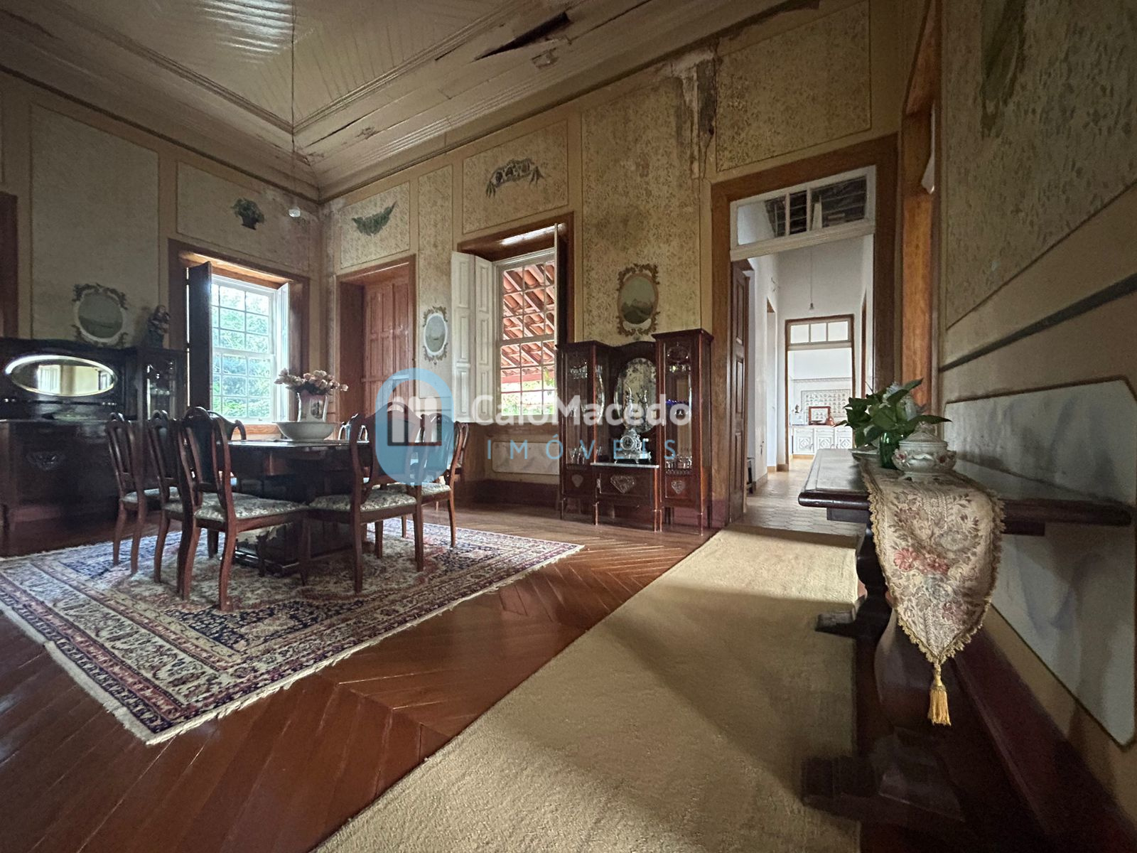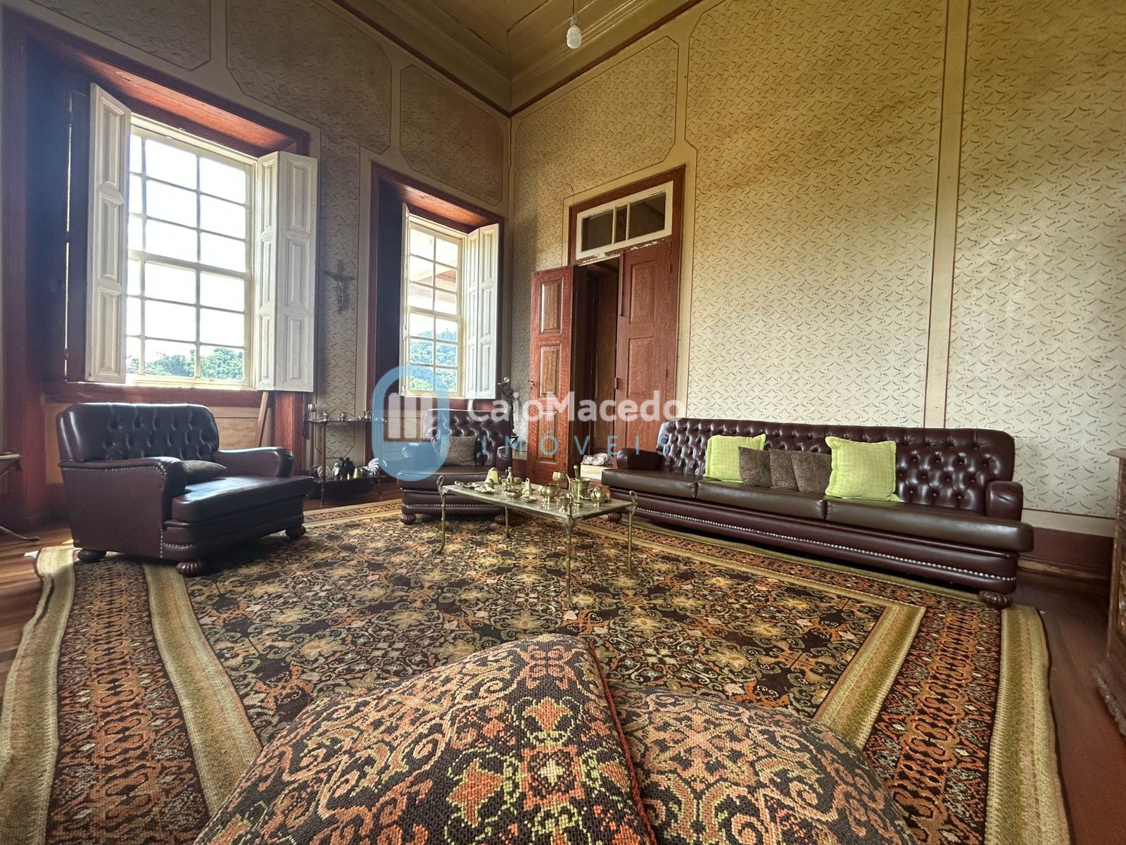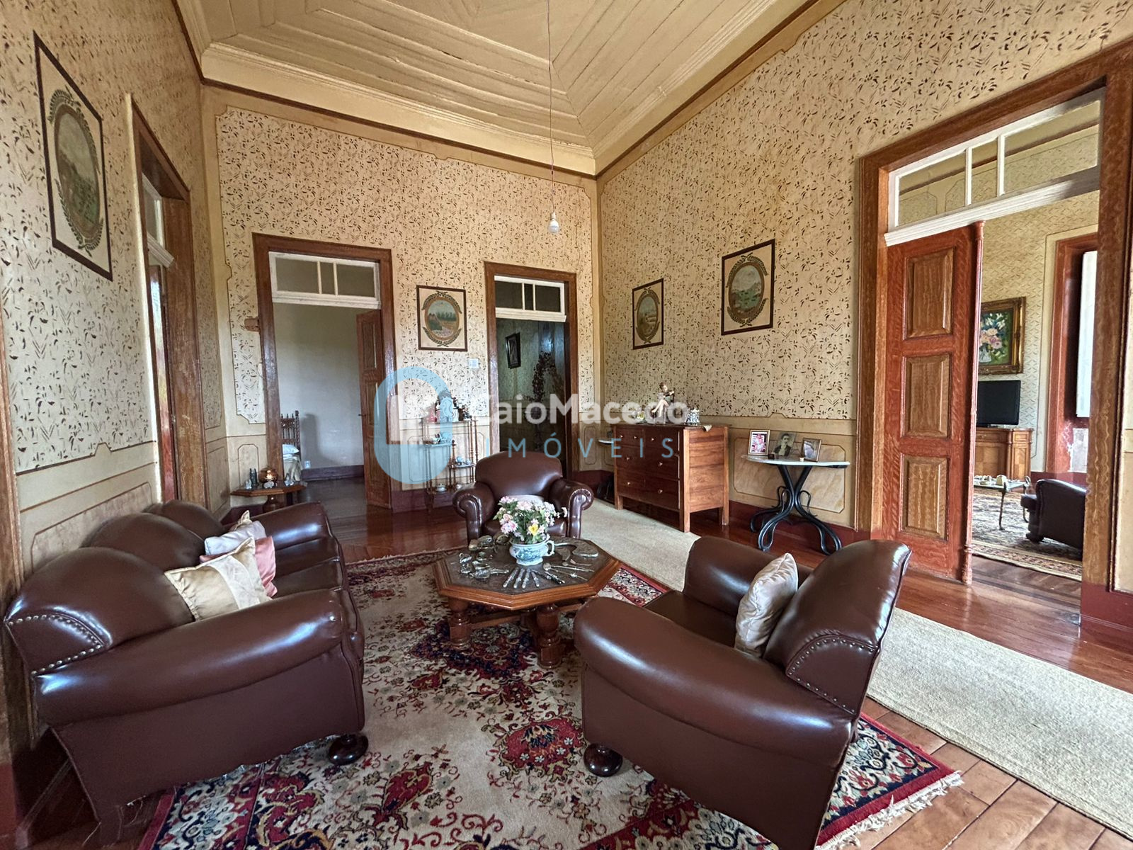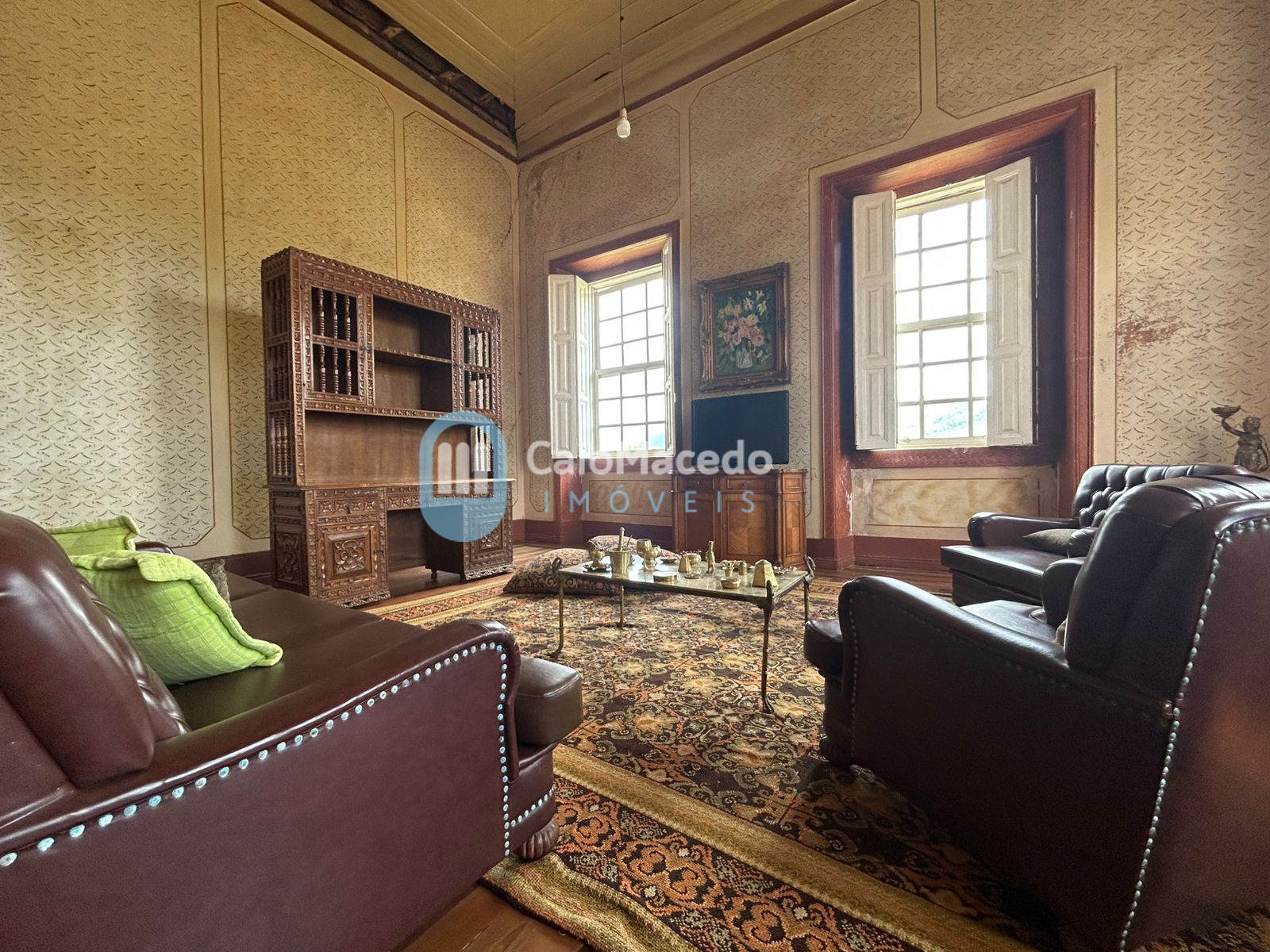 Sede social: casa de fazenda em estilo colonial/art déco autêntico, preservando a arquitetura clássica da região. A edificação possui amplas dimensões e planta que favorece tanto a residência familiar quanto o potencial para exploração comercial (eventos, turismo rural ou hospitalidade).