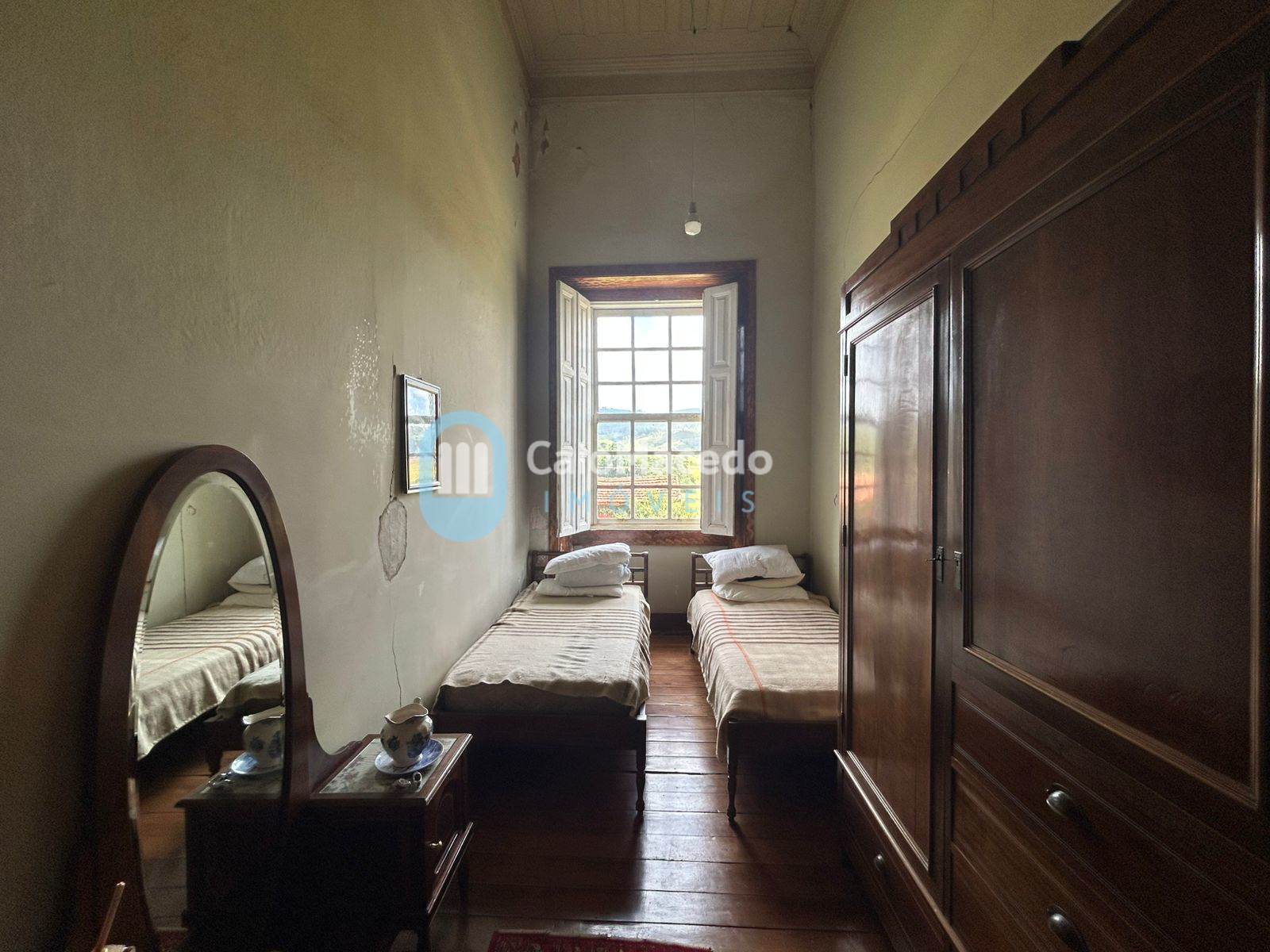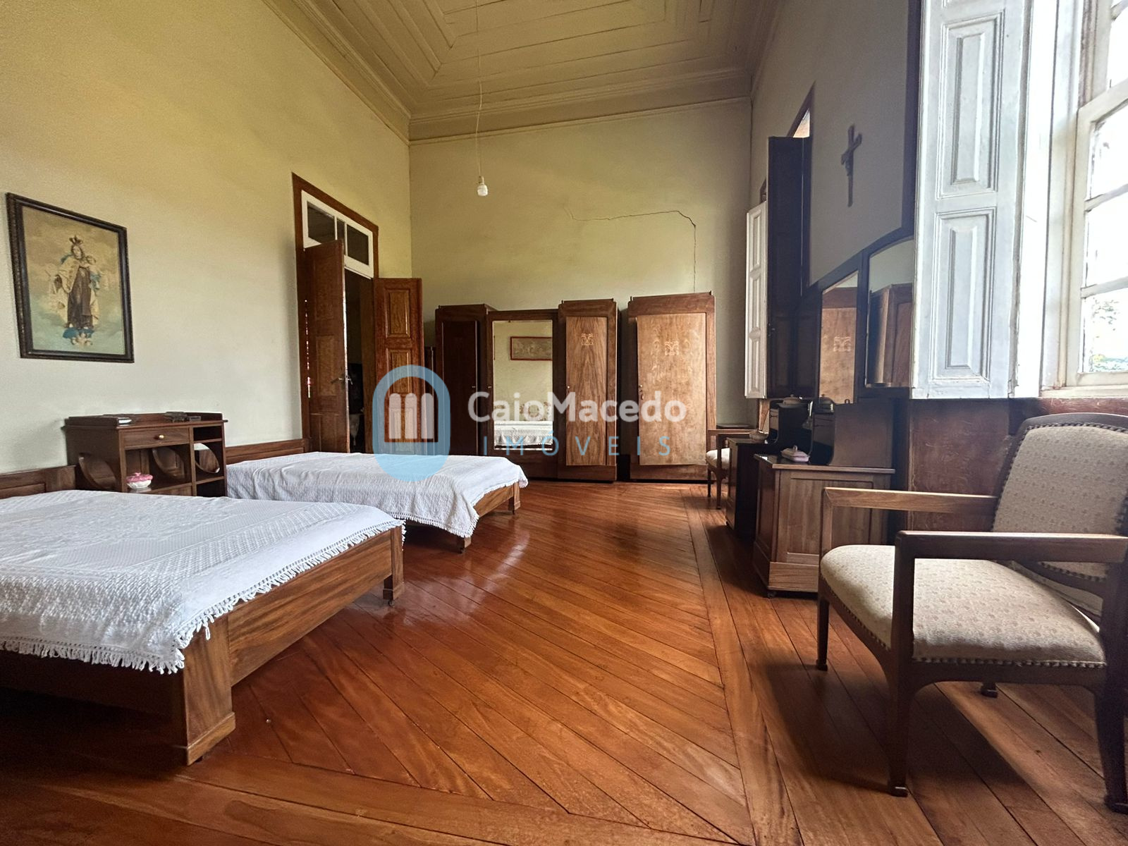 Com aproximadamente 312 m² de área construída, conta com 5 dormitórios, uma suíte, um banheiro, duas cozinhas, duas despensas, escritório, sala de jantar, sala de televisão, duas varandas grandes, sendo uma delas com vista para o terreiro de café e a outra de frente para a área de lazer, dois jardins, áreas de lazer com gramado, churrasqueira, cozinha, despensa, banheiro, garagem, e além disso, conta com um lavanderia grande e um quarto externo.