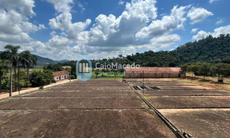 Localizada próximo a casa sede, a propriedade conta com uma tulha de armazenamento de aproximadamente 600 m² e um terreiro para lavagem e secagem de café com 4.300 m², além de dois lagos para criação de peixes, um chiqueiro e um curral.