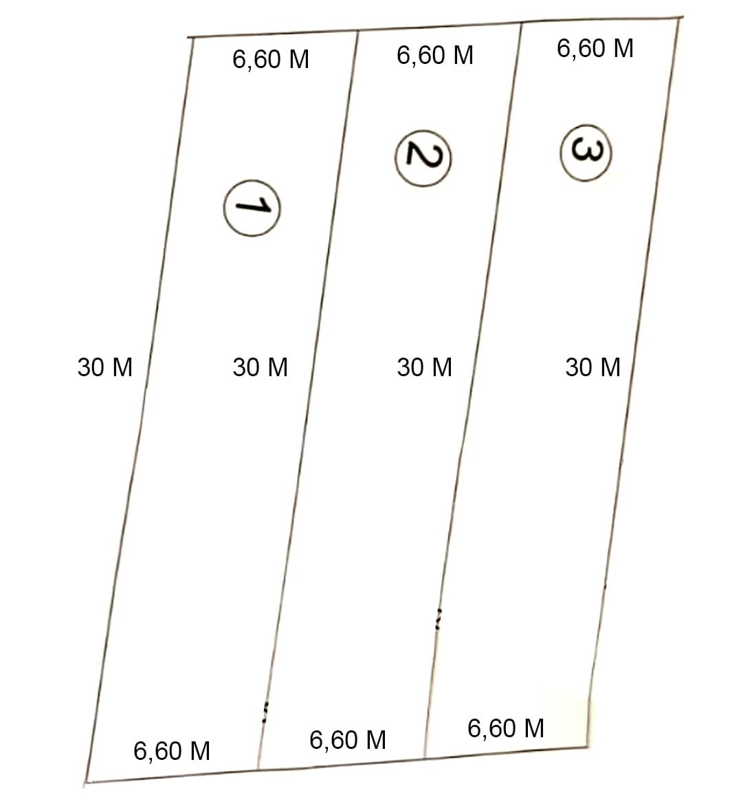 • Frente 6,60m x 30,00m aos fundos;